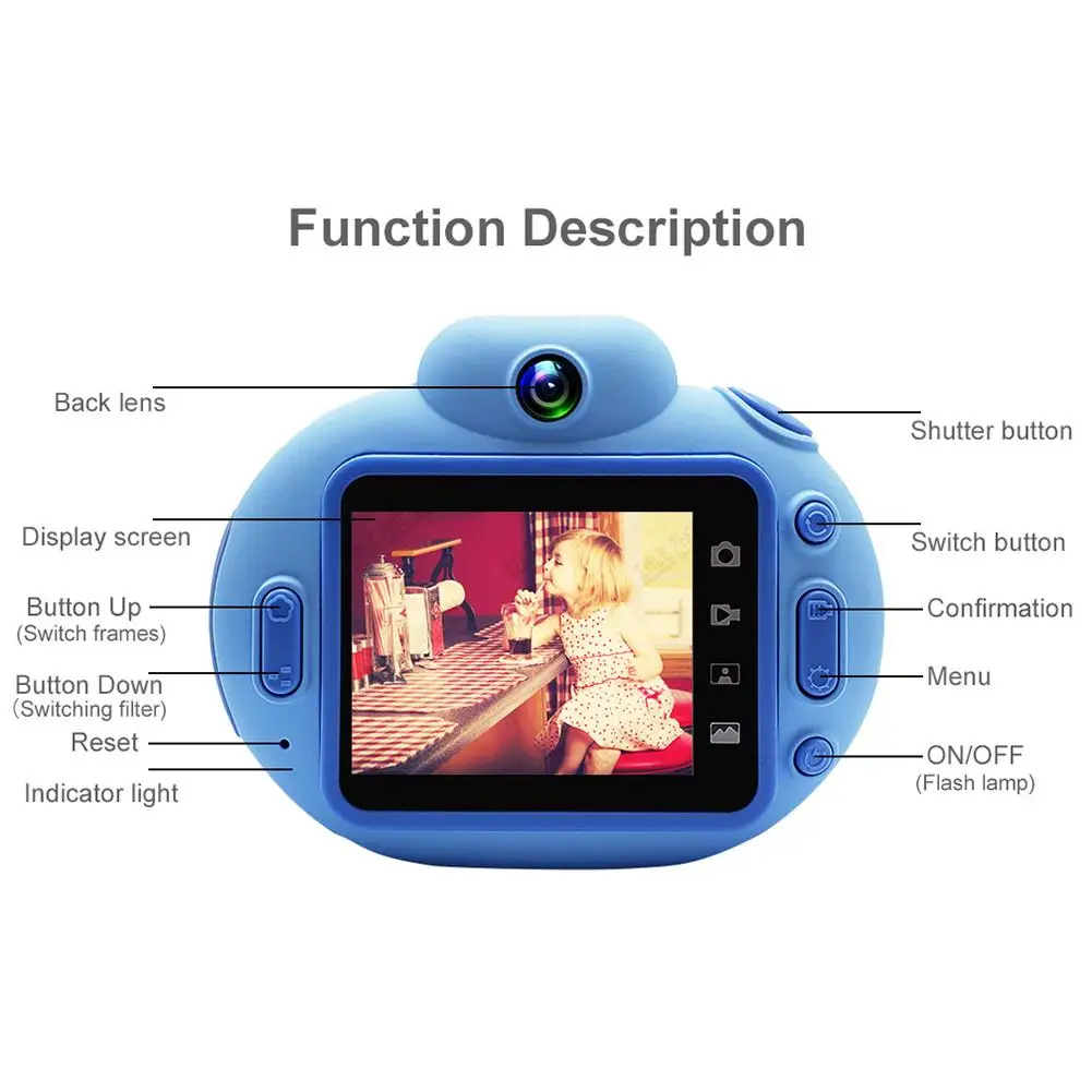Особенности:1. Супер мини-размер: подходит для маленьких детей; Очаровательные мультфильмы и яркий цвет, это вдумчивый подарок для детей, это волшебная камера, которая открывает интеллект, чтобы развивать наблюдение и открытие детей.