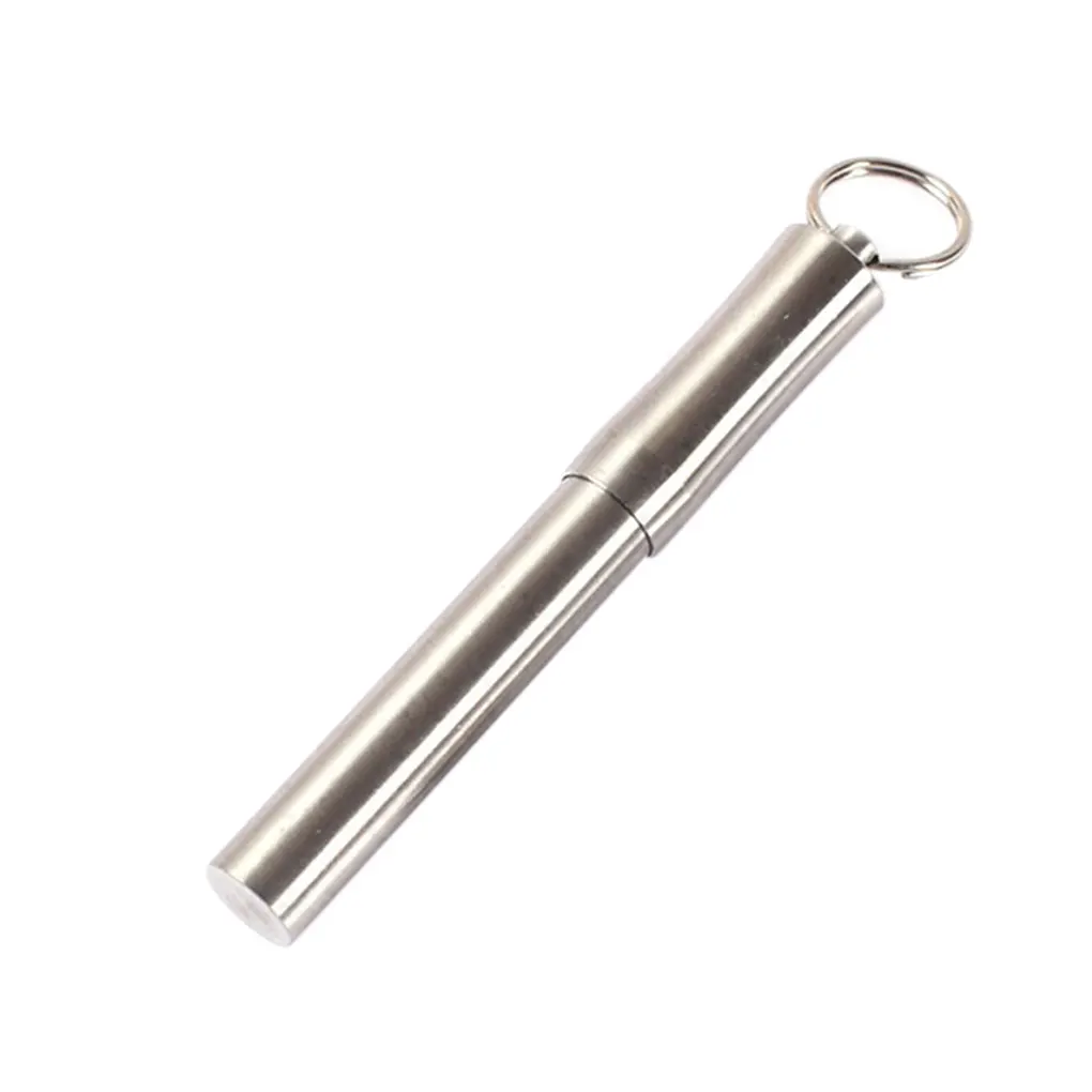 Эта портативная зубочистка держателя сделана из хорошего качества нержавеющей стали, она может вместить 4 зубочистки из титанового сплава.