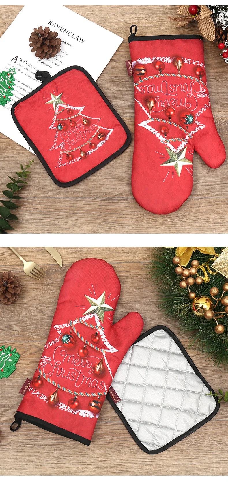 Рождественские Жаростойкие перчатки для выпечки духовка микроволновая печь изоляция рождественские двухкомпонентные перчатки для печи или кухонной плиты коврик