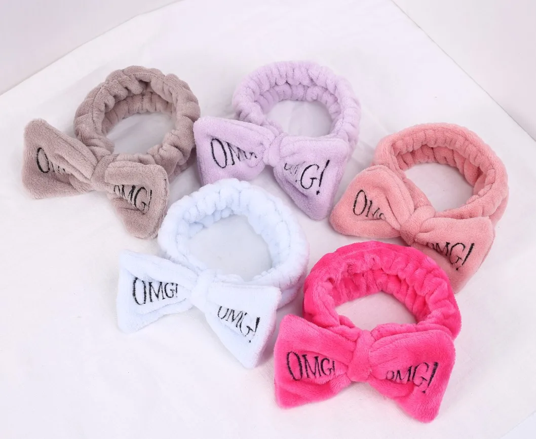 Отзывы о New Letter OMG Coral Fleece Wash Face Bow Headbands Women Girls Hair Holder Elastic Hairbands Care Tool Accessories | Красота и