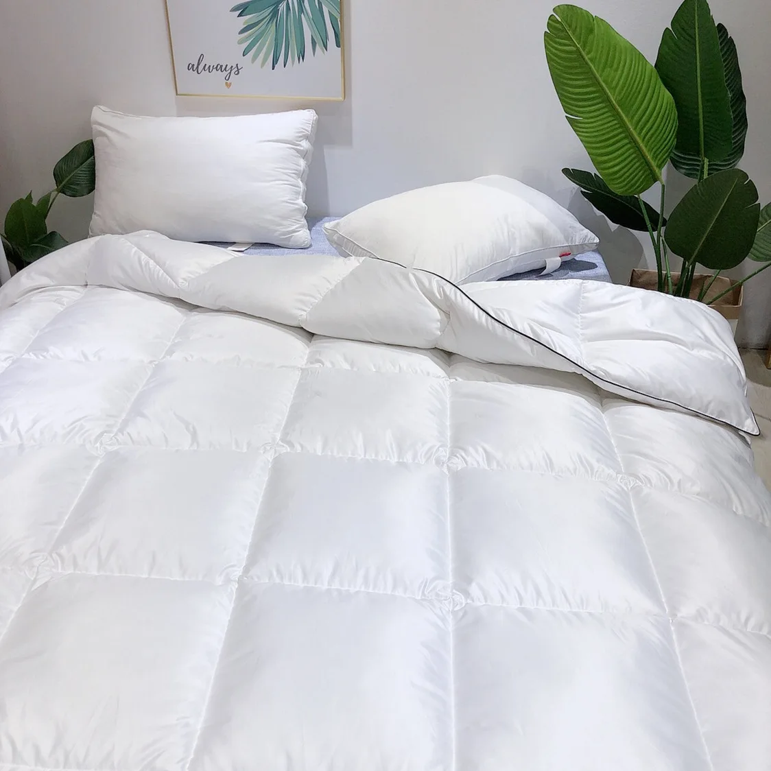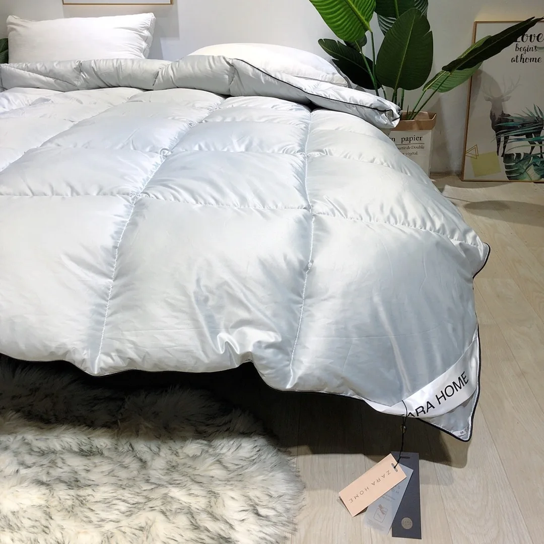 Ткань: импортный мягкий шелк, прочный, не выцветает, не деформируется Материал наполнения: 95% белый гусиный бархат + стеганая фиксированная не линяет Тестовый порт: 95% белый бархат Параметры: 200*230 см 3 кг 200*230 см 4 кг