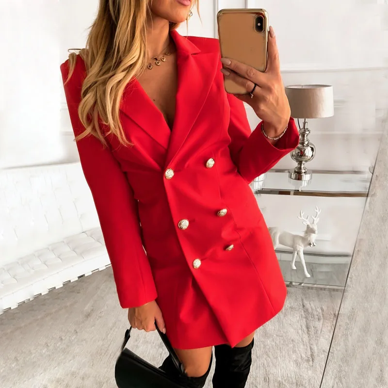 Отзывы о Женский костюм Блейзер платья двубортный приталенный Тренч на пуговицах