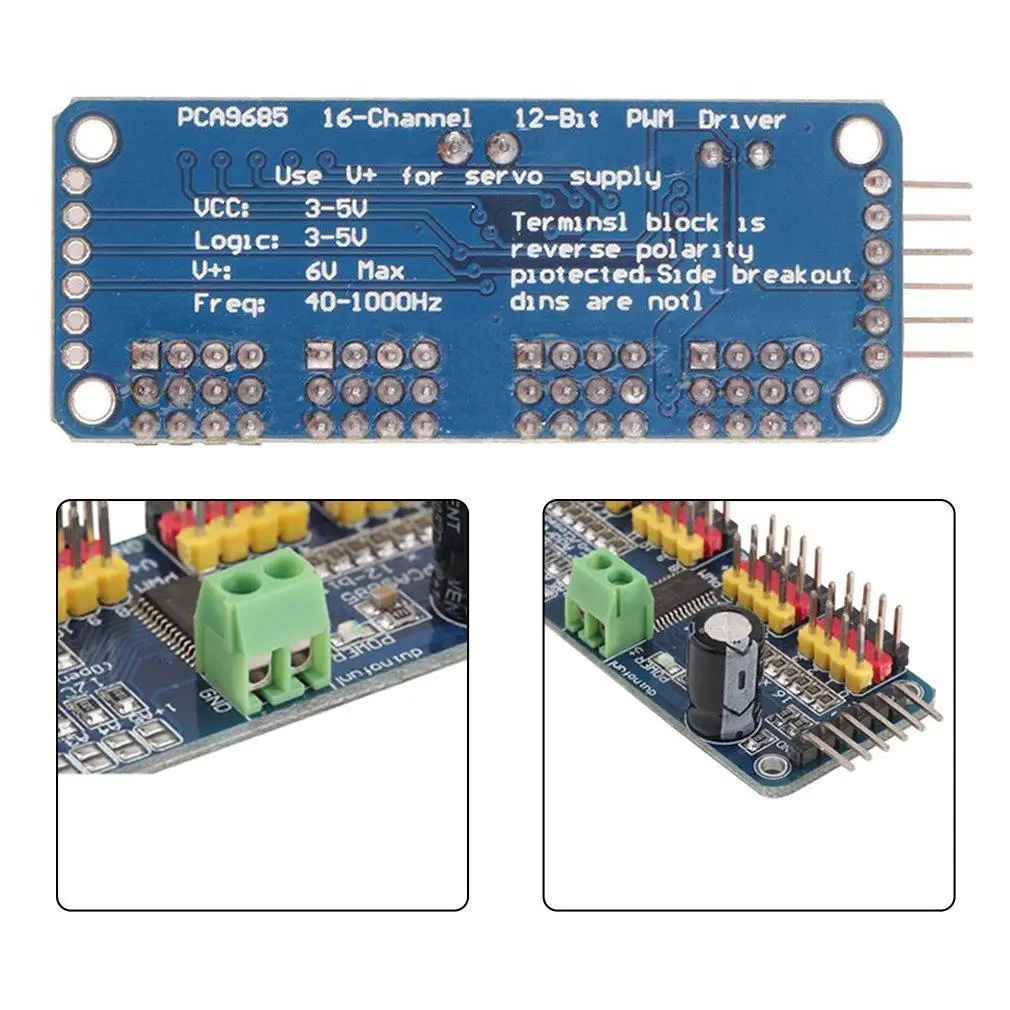 Вход I2C, 16 ШИМ-выход управления, вы можете управлять 16-ходовым сервомотором.