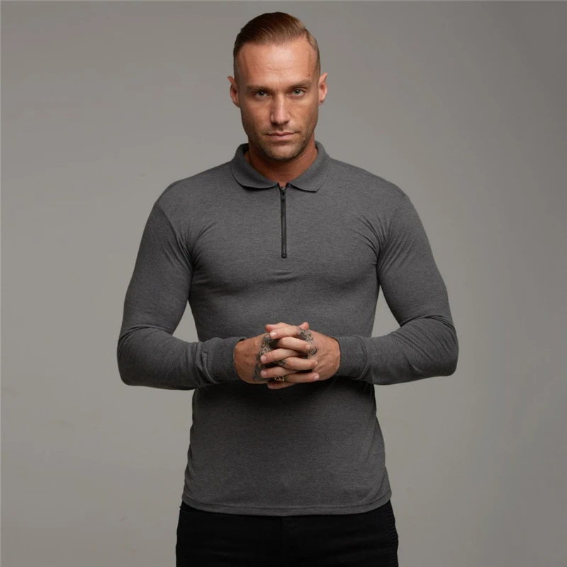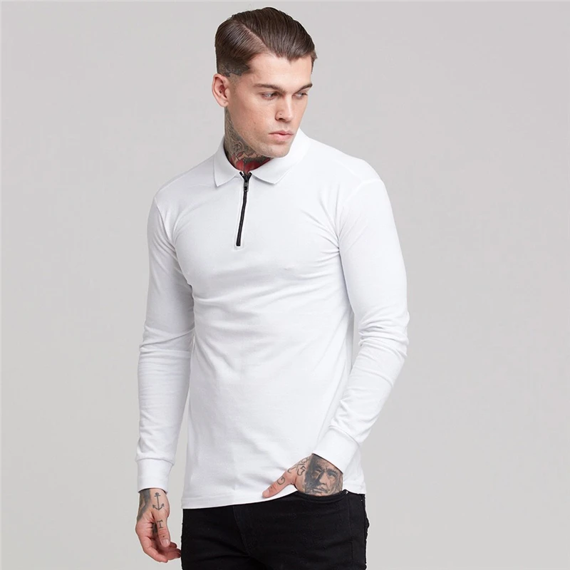 Отзывы о Рубашка-поло мужская с длинным рукавом тянущаяся хлопковая майка-поло для
