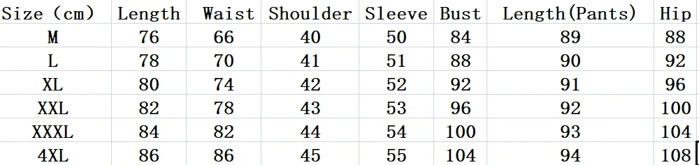 | 4XL | 86 | 86 | 45 | 55 | 104 | 94 | 108 |