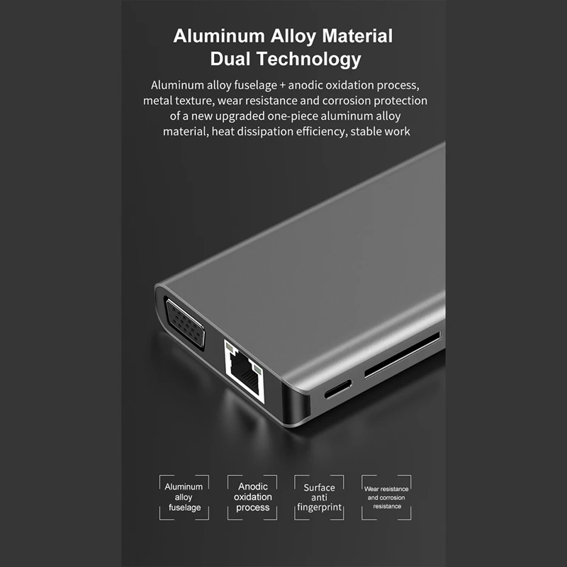 8-в-1 Тип C к HDMI VGA концентратор сетевой карты Расширение Док-станция USB C к HDMI кард-ридер