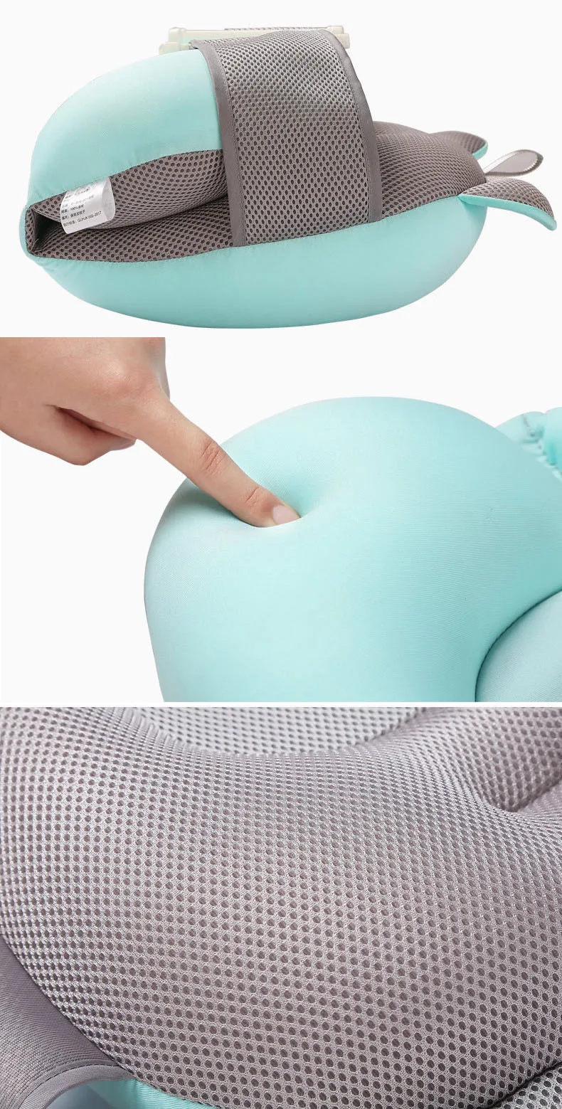 Он использует структуру ванны-кровати для эффективного предотвращения скольжения ребенка в воду. Мягкий материал позволяет избежать крушения головы ребенка по краям кровати.