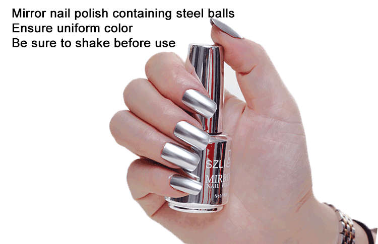 * Лак для ногтей с зеркальным эффектом содержит стальные шарики. Для того, чтобы обеспечить равномерный цвет, его необходимо встряхнуть перед использованием.