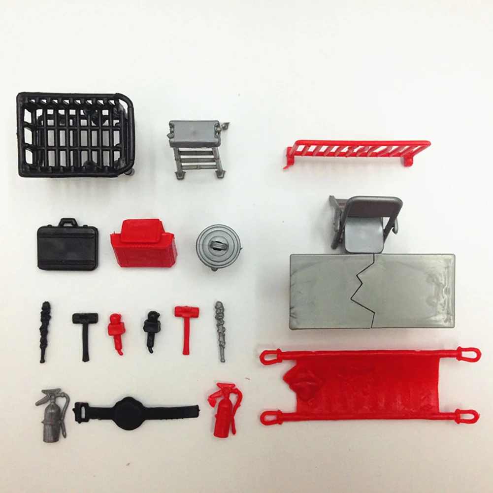 Несколько реалистичных аксессуары включают в себя стол, корзина для мусора, баррикадное заграждение, носилки, клетки, лестницы, стулья, портфель, гасителя, корзина, пояс, 6-гранная кольцо и т. д.