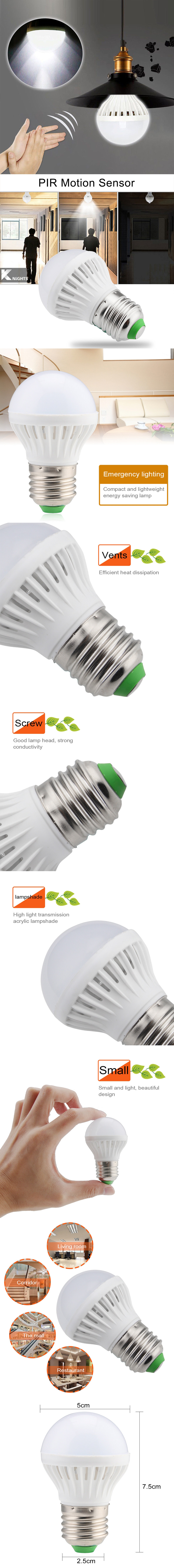 Описание: Оригинальный светодиодный светильник, более длительный срок службы. Интегрированный дизайн, элегантный внешний вид. Светильник с самочувствием или звуковым управлением, прост в использовании. E27 дизайн лампы, нет необходимости заменять провода, может быть использован непосредственно ввинчивается. Включается автоматически при обнаружении звука в темноте и выключается через некоторое время. Автоматическая блокировка в течение дня для экономии энергии. Подходит для спальни, шкафа, шкафа, прихожей, мастерской, подвала, крыши, двери и других мест.