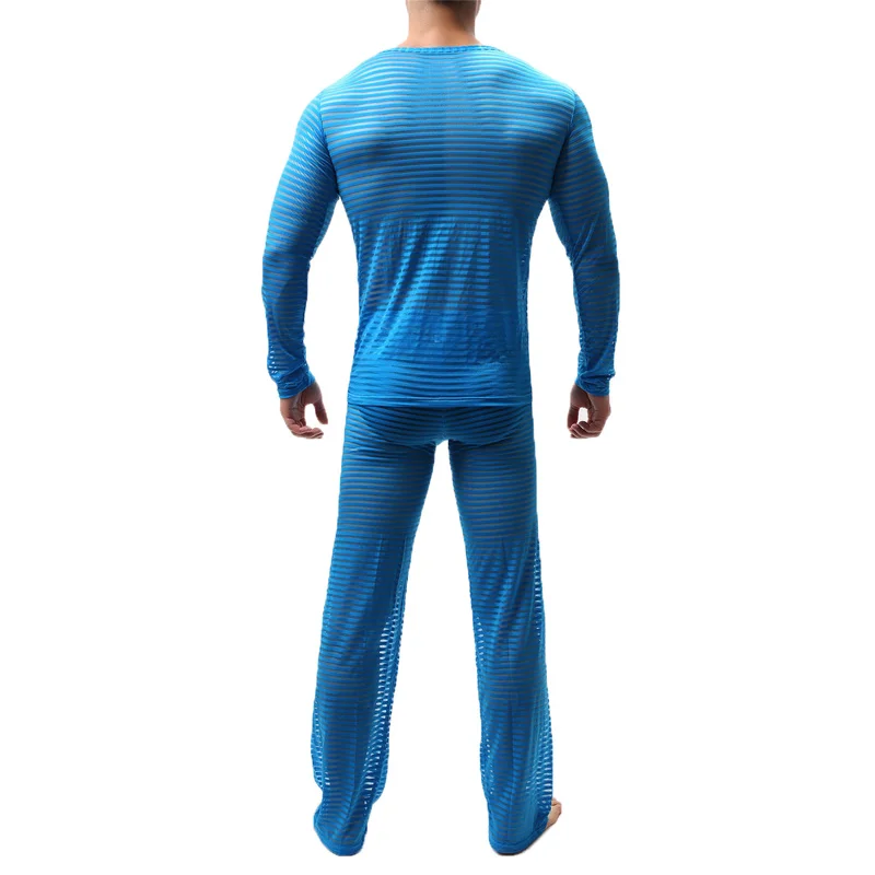2 шт./компл., мужские комплекты нижнего белья, прозрачные Свободные повседневные спортивные футболки для фитнеса, брючные костюмы, сексуальные мужские пижамы, нижнее белье