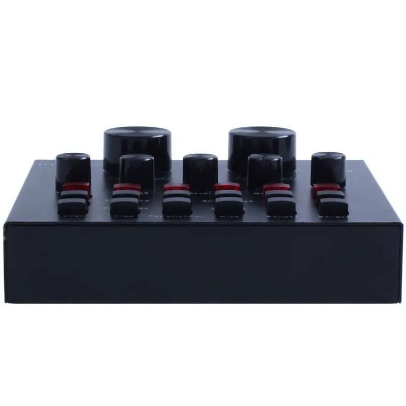 Характеристики звуковой карты: 12 видов электронных звуков, 12 видов звуковых эффектов, 6 видов режимов эффекта, Регулировка размера реверберации, регулировка громкости микрофона, высокая и низкая Регулировка звука, регулировка громкости записи, регулировка громкости музыки, регулировка громкости монитора (функция возврата уха). Поддерживает использование мобильных компьютеров, поддерживает одну гарнитуру для использования, 7 видов подключения: один сотовый телефон караоке live, двойной мобильный телефон live, три мобильный телефон live, мобильный компьютер синхронный прямой эфир, одиночная компьютерная трансляция, компьютерное сопровождение мобильный телефон live, музыкальный инструмент вход мобильный телефон live.