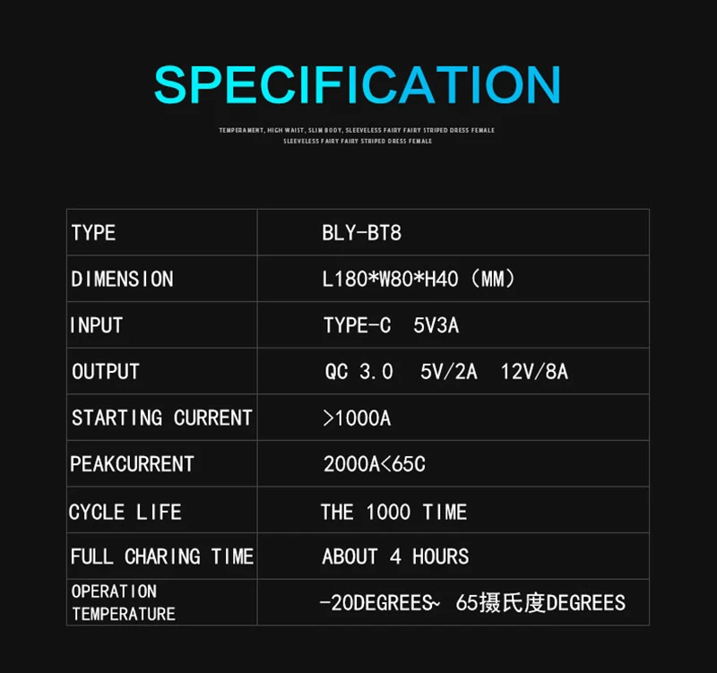 BLY-BT8 multi-function car emergency start power supply with start power cord