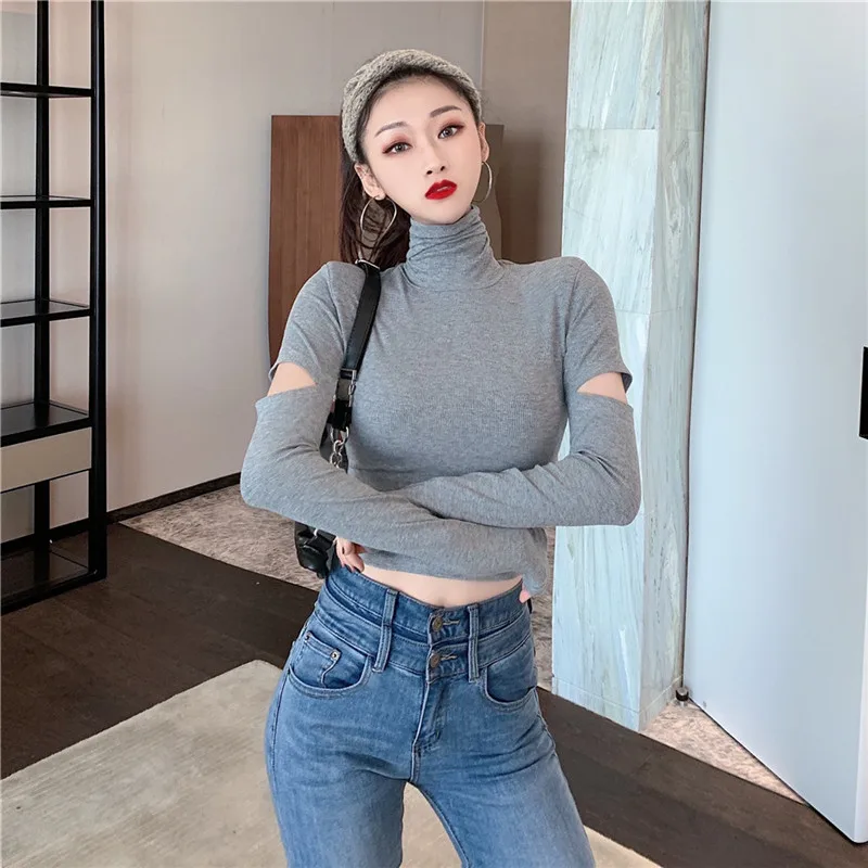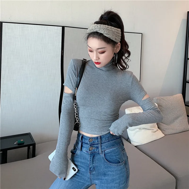 Отзывы о Женская укороченная футболка с длинным рукавом Повседневная однотонная