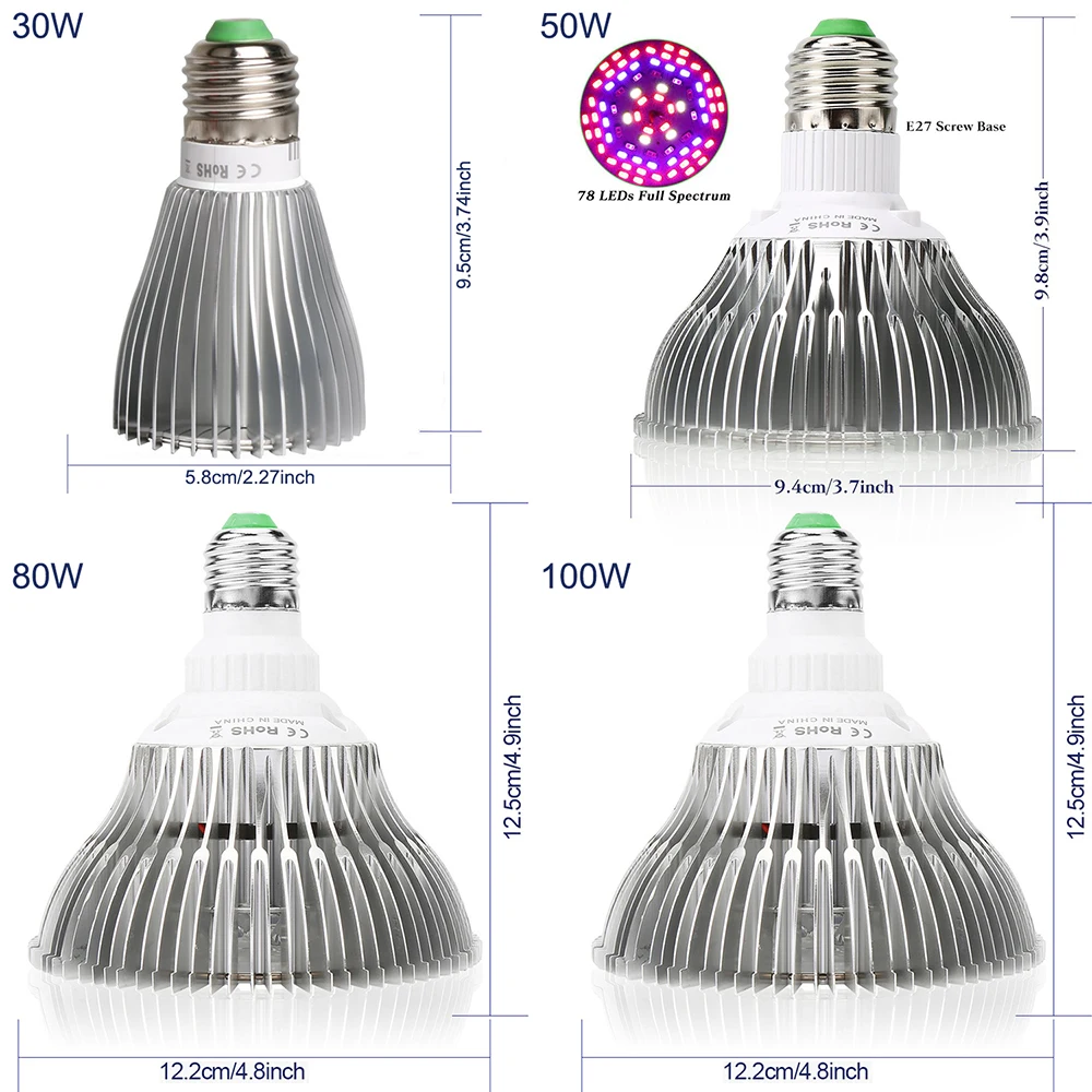 10/30/50/80/100 W E27 светодиодный Grow светильник лампы для растений/Вег/цветы с полным спектром для выращивания растений светильник Крытый расти светильник Инж