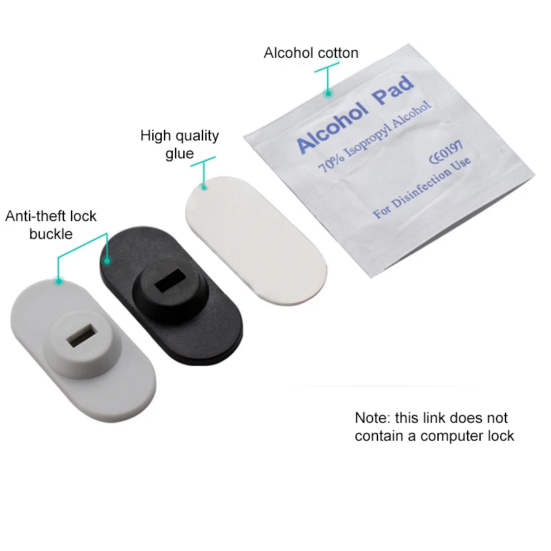 Очистите поверхность ноутбука с помощью спиртовой подкладки. Оторвите защитную пленку и закрепите замок на ноутбуке наклейкой. Нажмите на фиксированный замок в течение 2-5 минут. Подождите 24 часа, а затем используйте его.