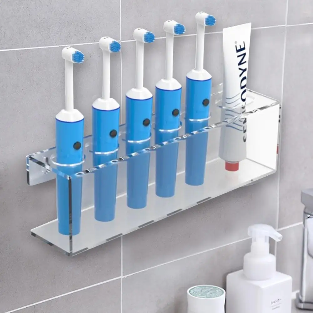 2. Качественный материал: современный держатель электрической зубной щетки изготовлен из прозрачного акрила. С несколькими слотами для зубных щеток и 1 слотом для зубной пасты, ваша семья нуждается!
