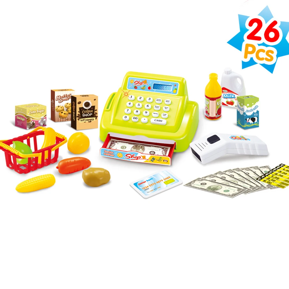 26 шт./компл. магазин кассовый сканер денежная Модель со звуком ролевые игры детская игрушка
