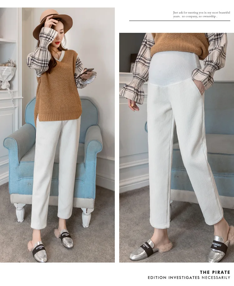 Вельветовые брюки для беременных; брюки для беременных женщин; зимняя теплая бархатная одежда; свободные плотные брюшные брюки; Одежда для беременных