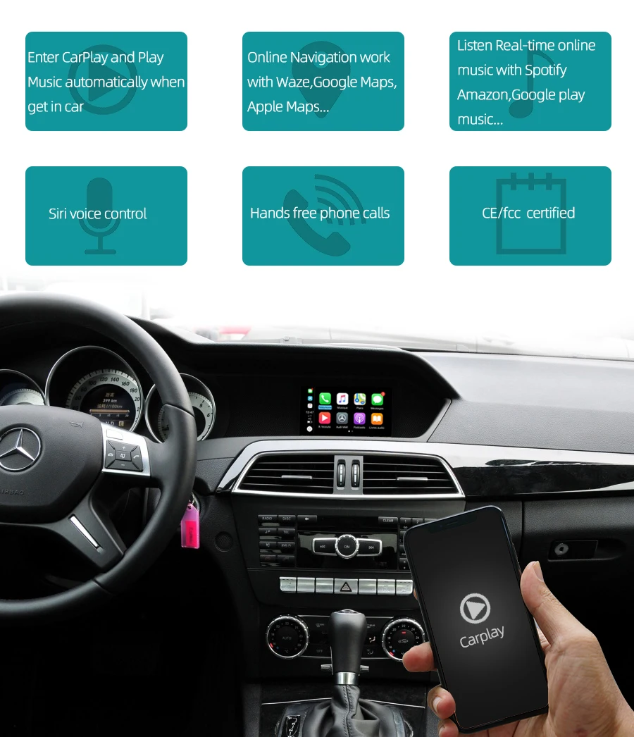 Поддержка моделей: 2013-2015 Mercedes C CLA CLS класс NTG4.5/4,7 ntroduction: 1. Работает с беспроводным Apple CarPlay, сопряжение через Bluetooth, передача через wifi. 2. работа с проводным CarPlay также, выключите Wi-Fi сначала, подключите через кабель освещения (проводной держать ваш телефон заряжен в то же время) 3. android Mirroring-Ссылка для телефонов Android (ссылка для загрузки) 4. gps навигационные приложения, Google maps, Waze и Apple maps все доступны, информация о живом движении 5. музыкальные яблоки Spotify, Apple Music, Amazon и т. Д. Аудио через завод Audi медиа, текст показывает на дисплее для некоторых приложений. 6. Голосовое управление с помощью слова "Привет Siri..." 7. Вход для фронтальной/задней/360 камеры. (Поддерживаются линии динамического наведения) 8. Usb-флешка для воспроизведения музыки и видео путем подключения usb-порта из комплекта CarPlay 9. Регулировка эквалайзера. Лучшее качество звука. Выберите свой любимый стиль свободно (поп, рок, мягкий, стандартный ..) 10. Полное управление кнопками OEM. 11. Внимание: прежде чем разместить заказ, пожалуйста, проверьте, активирован ли AUX автомобиля или имеет ли подлокотник интерфейс AMI.