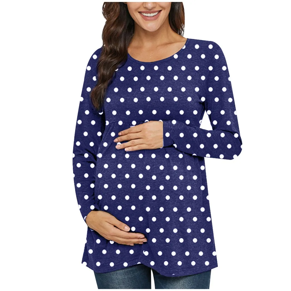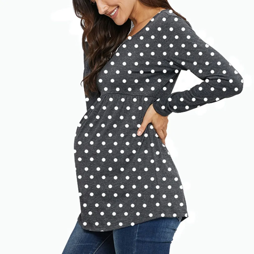 Women's Maternity Long Sleeve Dot Printed Tops Pregnant T-shirt Blouse