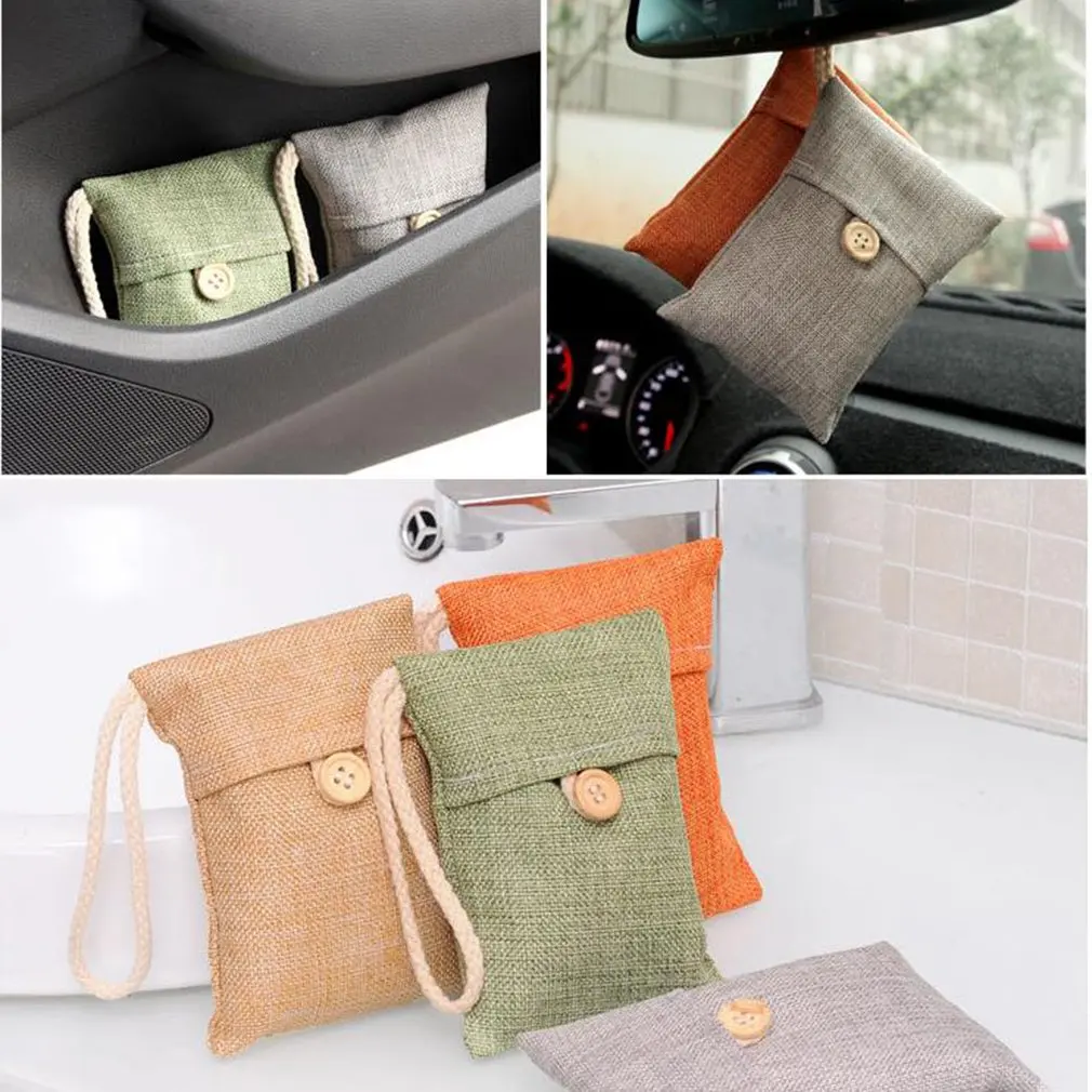 1. Посылка из бамбукового угля в вышитом пакете для вина в качестве воздушного дезодоранта в автомобиле, особенно для курения.