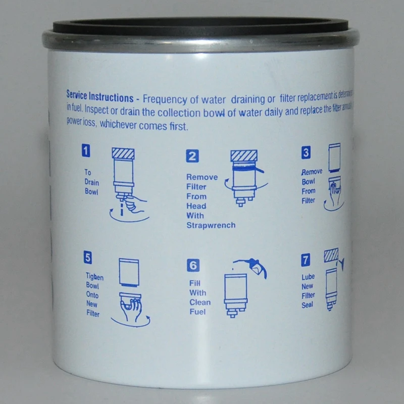 Слив воды или замена элементов определяется уровнем загрязнения топлива. Осмотрите Коллекционная миска для ежедневного использования воды и обслуживания по мере необходимости. Заменяйте элементы не реже одного раза в год или при снижении мощности.