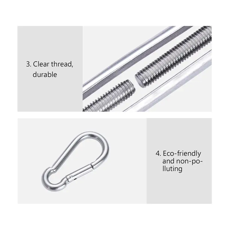 Изделие изготовлено из высококачественной нержавеющей стали, поэтому оно прочное и подходит для большинства видов теней. Не нужно беспокоиться об установке. Этот набор прост в эксплуатации и поставляется со всем, что вам нужно, чтобы повесить теневой парус.