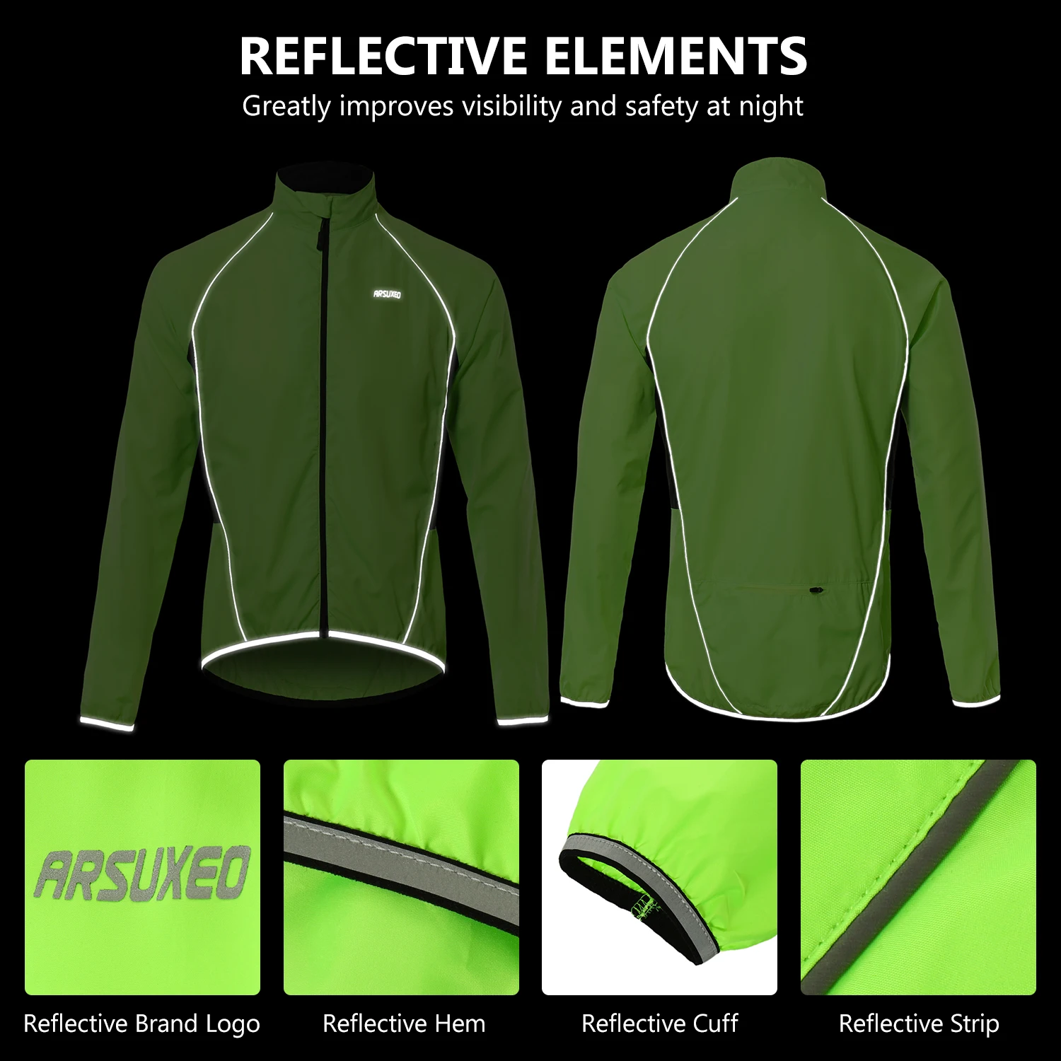 Велосипедная Куртка изготовлена из высококачественной ткани, дышащая, водоотталкивающая и удобная. Светоотражающие полосы спереди и сзади значительно увеличивают видимость при слабосветильник щении, тем самым повышая безопасность езды на велосипеде в ночное время. Отличный подарок для любителей езды на велосипеде и других видов спорта.