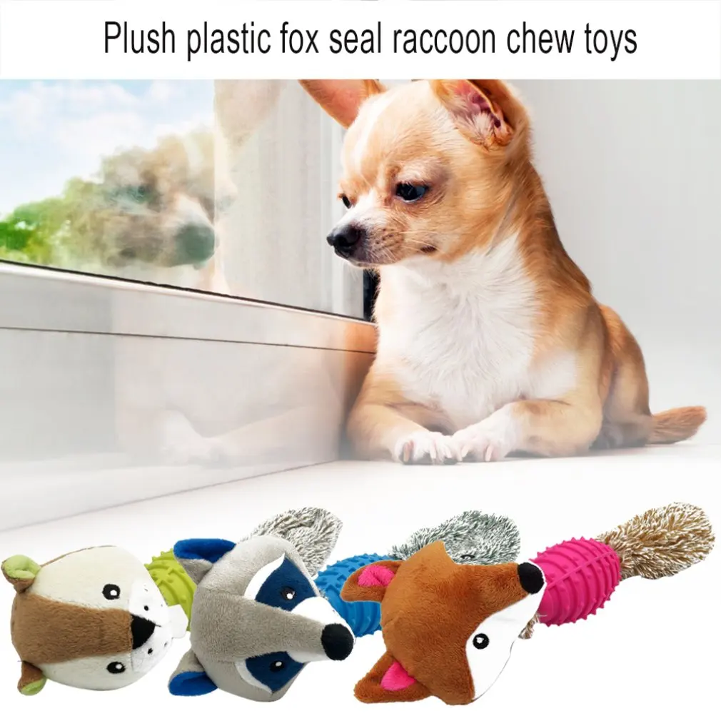 Игрушка для домашних животных из плюша и пластика, лисица, уплотнение, в форме енота, игрушка для кусания, чистка зубов, молярная игрушка для домашних животных, игрушка для декомпрессии
