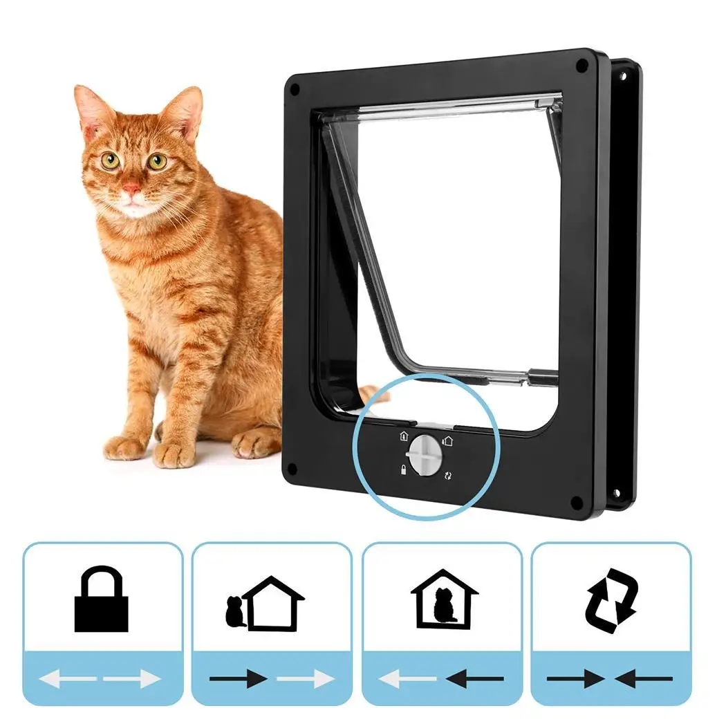 Переключатель в стиле ручки вращается в 4 направлениях, вы можете легко вращать его на 4 режима со стрелкой и значками для управления доступом вашей кошки: только, только, внутри и снаружи, полностью заблокирован.