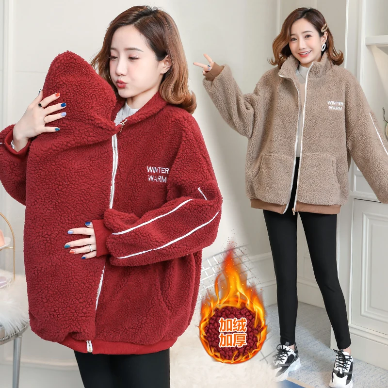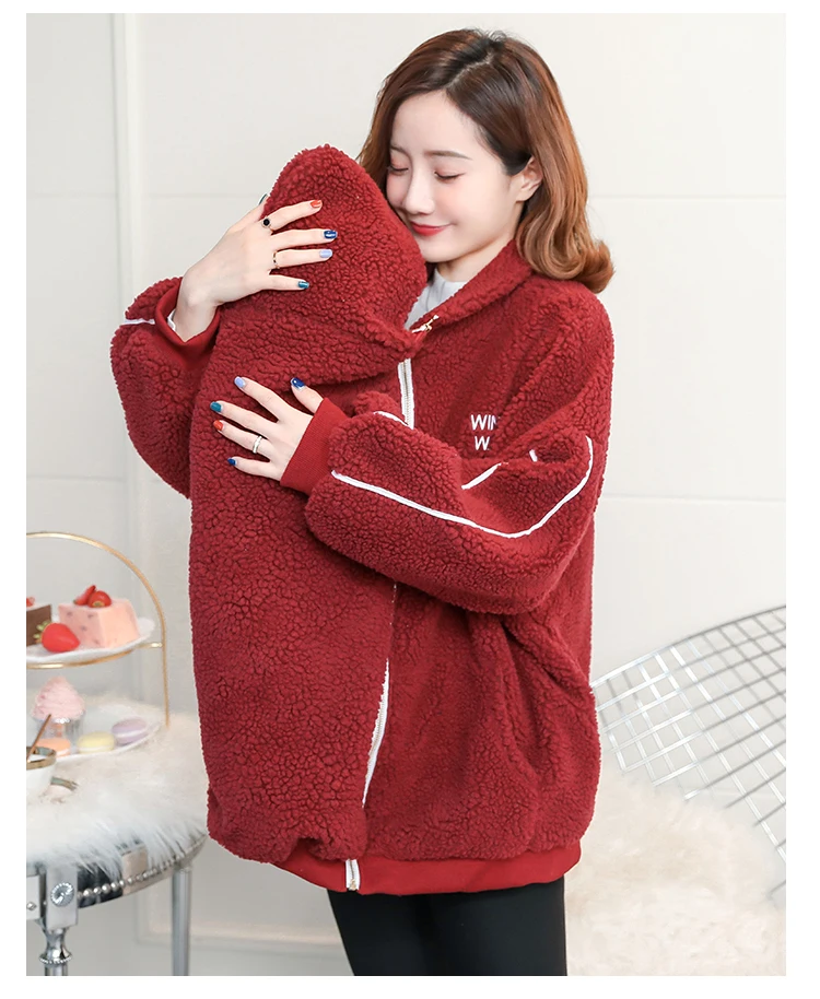 Осенне-зимние флисовые теплые пальто для беременных; Куртка-переноска для малышей; Одежда для беременных женщин; Повседневная Верхняя одежда на молнии для беременных