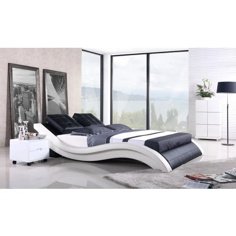 Отзывы о Горячая продажа черная кожаная кровать с матрасом и тумбочками | Мебель