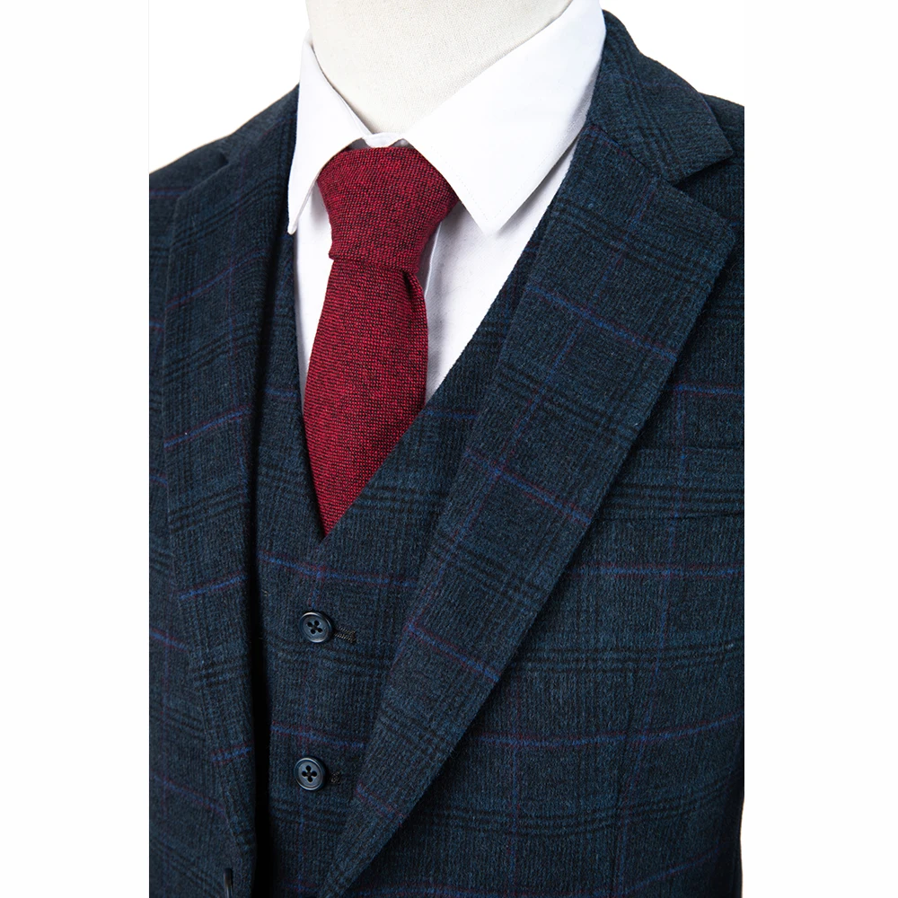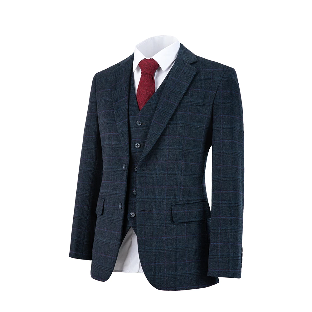 Отзывы о Wool woolen Navy blue overcheck plaid tweed men suit Custom made Retro wedding blazer 3pcs | Мужская одежда