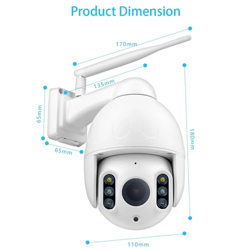 Широкий угол обзора и высокочувствительный датчик движения не дают ложных сигналов тревоги. Быстрое уведомление в приложении при обнаружении движения, вы не пропустите Обнаружение движения. IP66 водонепроницаемый, прочный металлический корпус для длительного срока службы. Встроенный слот для sd-карты, поддержка макс. до 128 ГБ, нет необходимости в компьютере и получить видео запись. Ip-камера 1080P, 2MP HD Авто IR-cut fliter, принесет вам истинный цвет.