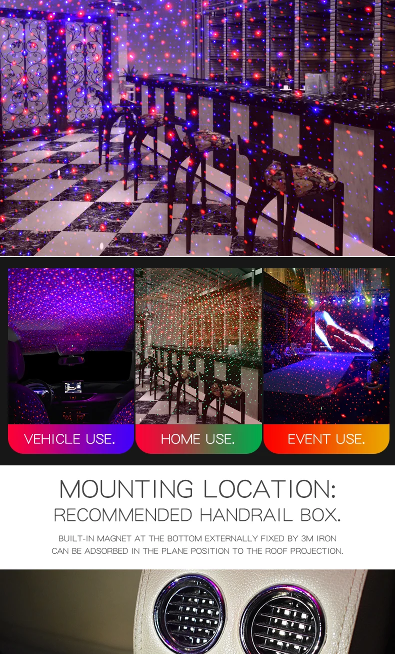 Луч лазерного света на звездное небо. Летнее небо так красиво, так далеко, так тоскует. Я уселся на земле, наслаждаясь прохладной летней ночью, и наблюдал за очаровательным небом. Самая яркая звезда в ночном небе всегда освещает мой путь и освещает мою жизнь 1. Диодная проекция переменного света: внутренний настенный потолок создает мечтательную сцену urdar звезды .. 2. Авиационный алюминий полностью матовая текстура: Seiko для создания полной скрабы текстуры, тяжелая в защите, отказывается нагревать fuselage .. 3. Подключение нескольких устройств, подключи и Свети: такие как зарядная головка мобильного телефона, компьютер, Мобильная мощность, автомобильный прикуриватель и так далее. 4. Сильная Магнитная Адсорбция дизайн регулировка угла: Uhiversal шаровая база дизайн, может регулироваться под несколькими углами, прост в использовании.