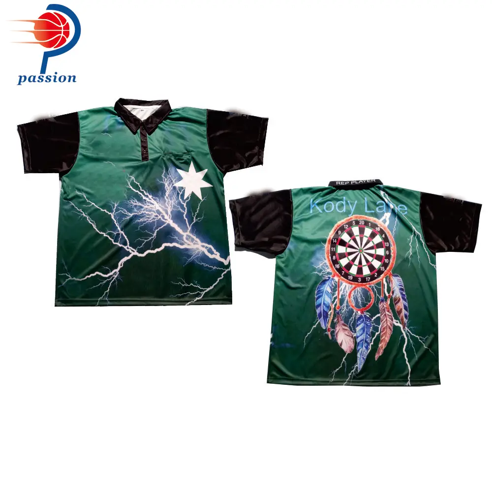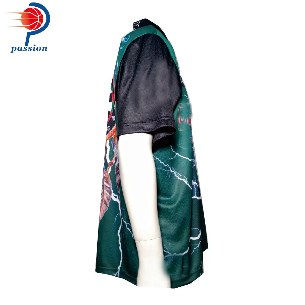 Хорошее качество зеленый черный дизайн для взрослых командные рубашки для игры в дартс Праздничная распродажа