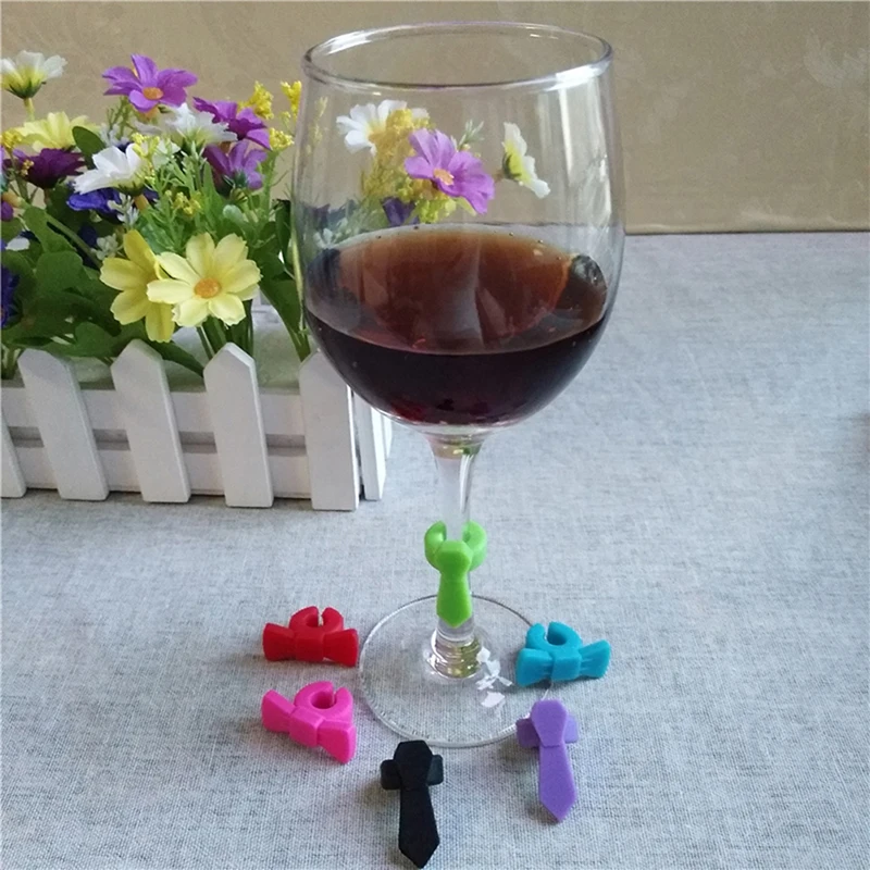 6 шт. силиконовый маркер на стакан для вина Креативный дизайн с бантом напитков
