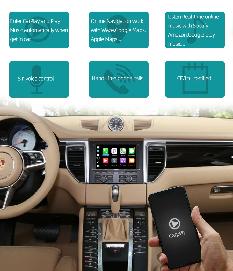 Модели поддержки: 2010-2016 Porsche Panamera 911 PCM3.1 2016 - Porsche Panamera 911 PCM4.0 Примечания: Пожалуйста, сообщите нам, какая модель вашего автомобиля и это год производства, или отправьте нам панель управления и экран дисплея перед размещением заказа, чтобы мы могли отправить вам точную модель вашего автомобиля, спасибо. 1. Прежде чем разместить заказ, пожалуйста, подтвердите, что у вашего автомобиля есть кнопка "NAVI"; Если есть кнопка "CD-AUX", она не может работать. 2. Если на вашем автомобиле установлено спутниковое радио Sirus, наш продукт также может работать идеально. Пожалуйста, дайте нам знать, мы отправим вам несколько винтов для установки. 3. Наш продукт включает микрофон для безопасности вождения, потому что Оригинальный Микрофон имеет интегрированную систему SOS. Введение функции 1. Работает с беспроводным Apple CarPlay, сопряжение через Bluetooth, передача через WIFI. 2. Работает с проводным CarPlay также, сначала выключите wifi, подключите с помощью кабеля освещения (проводное Удерживайте телефон одновременно) 3.Android Mirroring-Link для телефонов Android (ссылка для скачивания) 4.GPS навигационные приложения, Google Maps, Waze и Apple Maps доступны в режиме реального времени 5. Музыкальные яблоки Spotify,Apple Music, Amazon и т. Д. Аудио через фабрику Audi media, текст на дисплее для некоторых приложений. Голосовое управление, говоря «Эй Siri ..» 6.Aftermarket фронтальный/задний/360 вход камеры. (Поддерживаются линии динамического наведения) 7.USB флэш-накопитель для воспроизведения музыки и видео с помощью подключения usb-порта от CarPlay kit 8.EQ регулируемый. Лучшее качество звука. Выберите свой любимый стиль свободно (поп, рок, мягкий, стандартный ..) 9. Полное управление кнопками OEM.