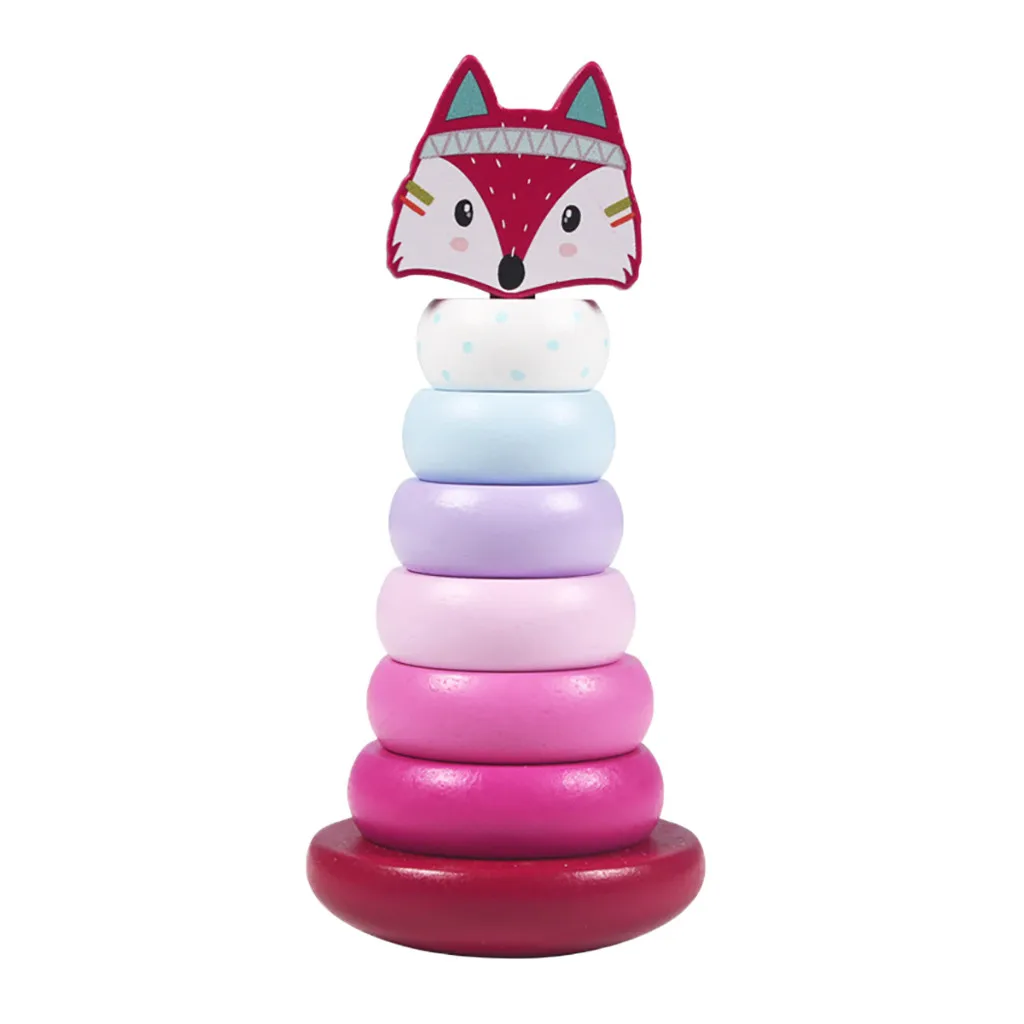 Wooden Stacking Rings Toy With Elephants Topper Developmental Toys