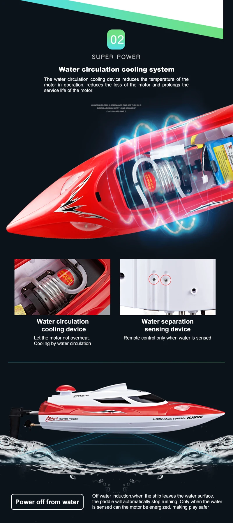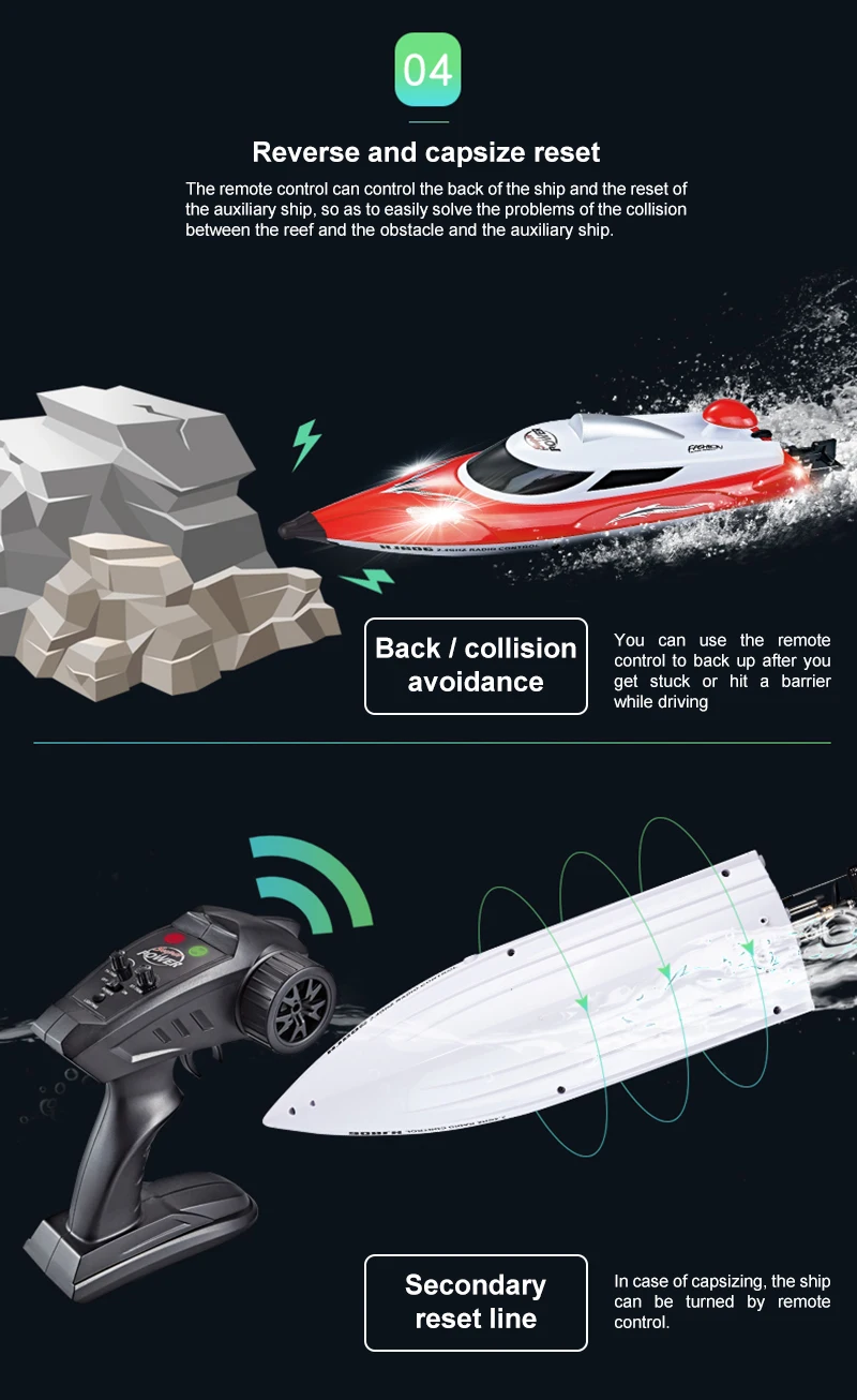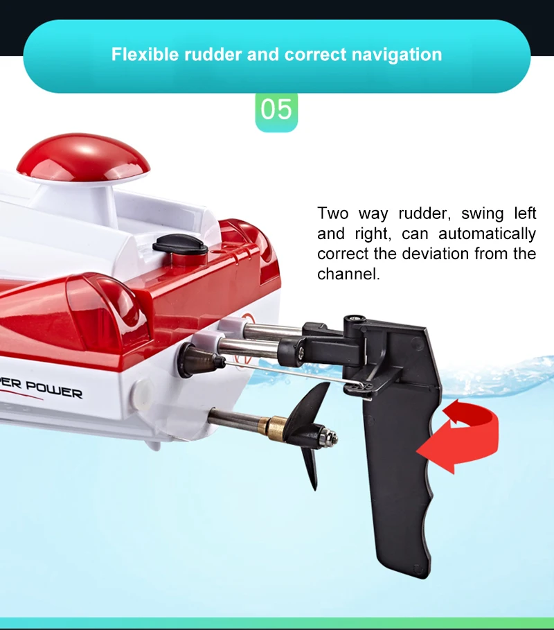 Это 2,4G RC лодка с высокой скоростью 35 км/ч. С 540 двигателями, сильной мощностью, с оборудованием водяного охлаждения во время вождения. Аккумулятор большой емкости может поддерживать более длительное время воспроизведения, что дает вам более обширный опыт!Характеристики: