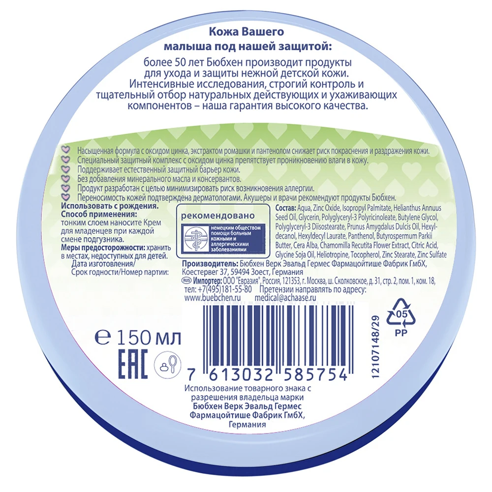 Отзывы о Крем для младенцев Bubchen 150 мл. | Мать и ребенок