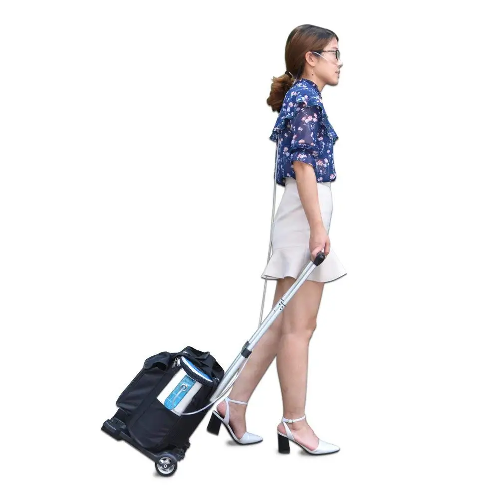 3,Портативное использованиеКонцентратор кислорода, включая литиевую батарею, автомобильный инвертор, сумку и тележку