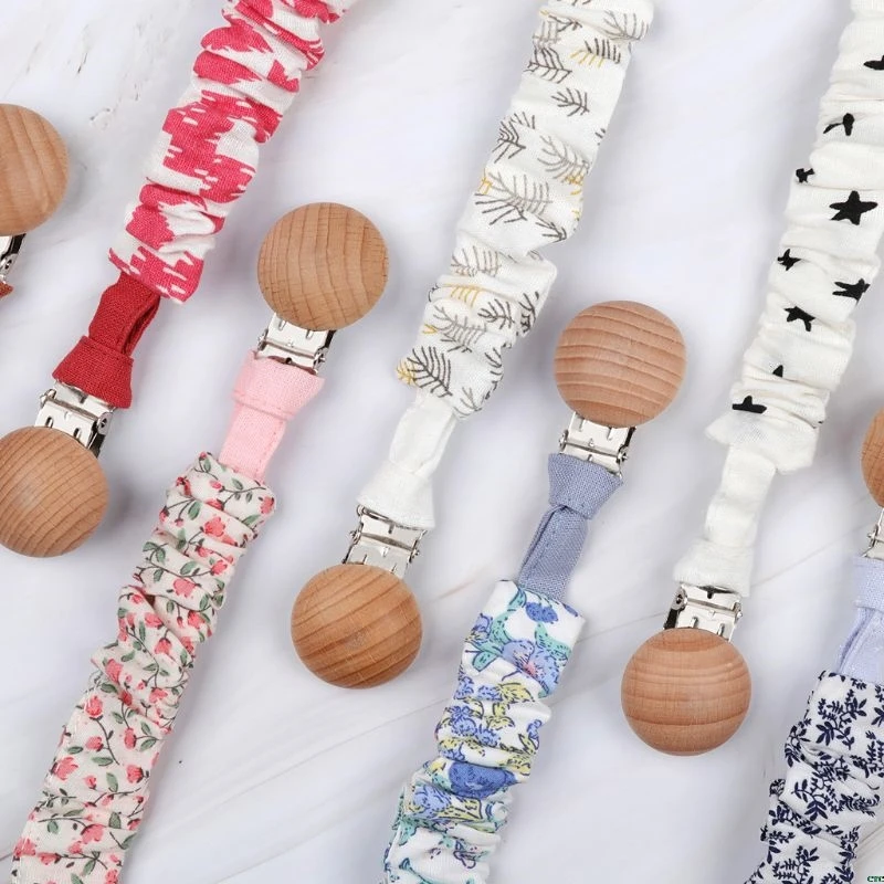 Baby Cotton Pacifier Chain Beech Wood Pacifier Clip Infant Teething Toys Holder For Nipples Baby Teether