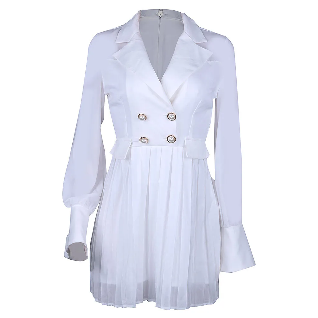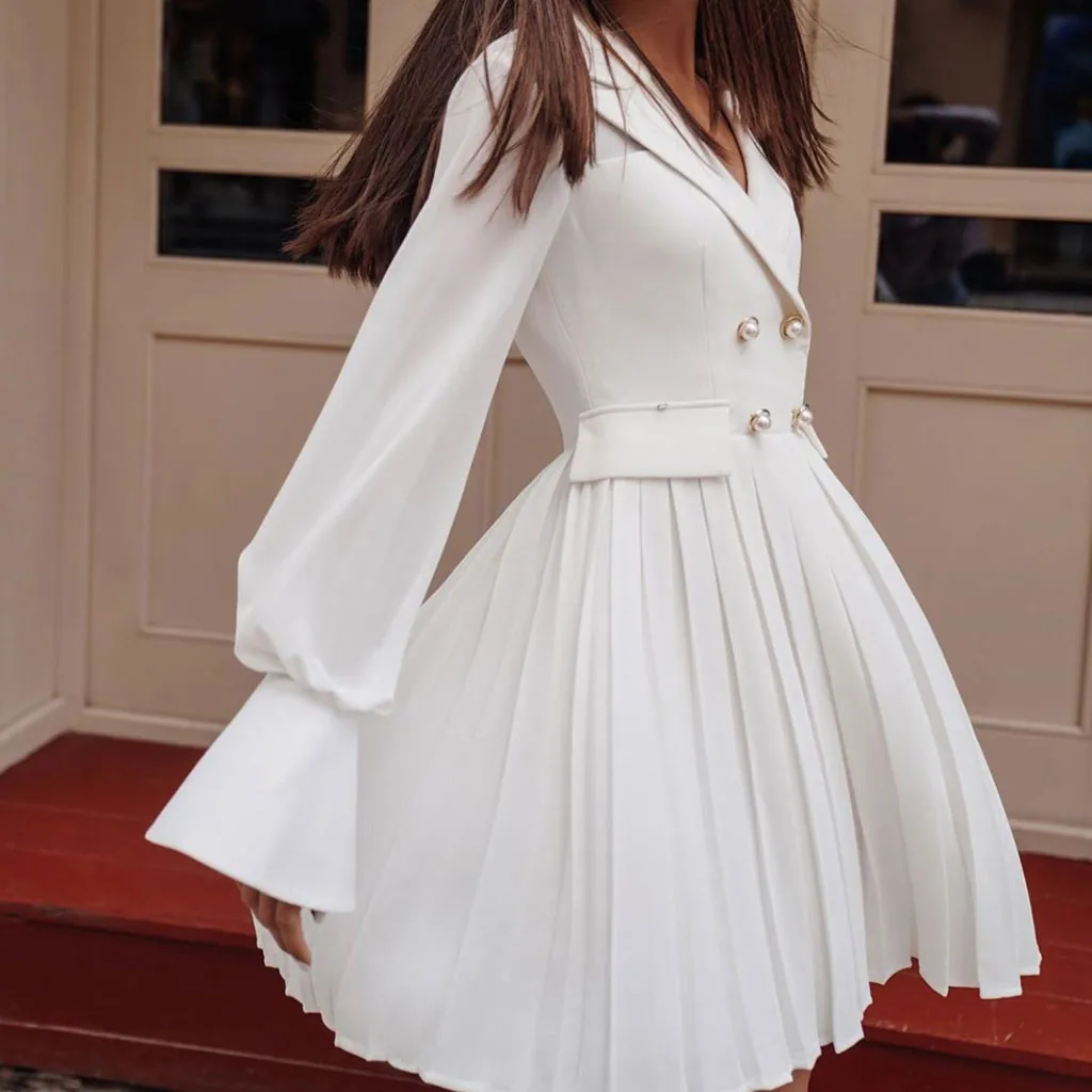 Отзывы о Женское винтажное плиссированное платье с поясом элегантное офисное двубортное