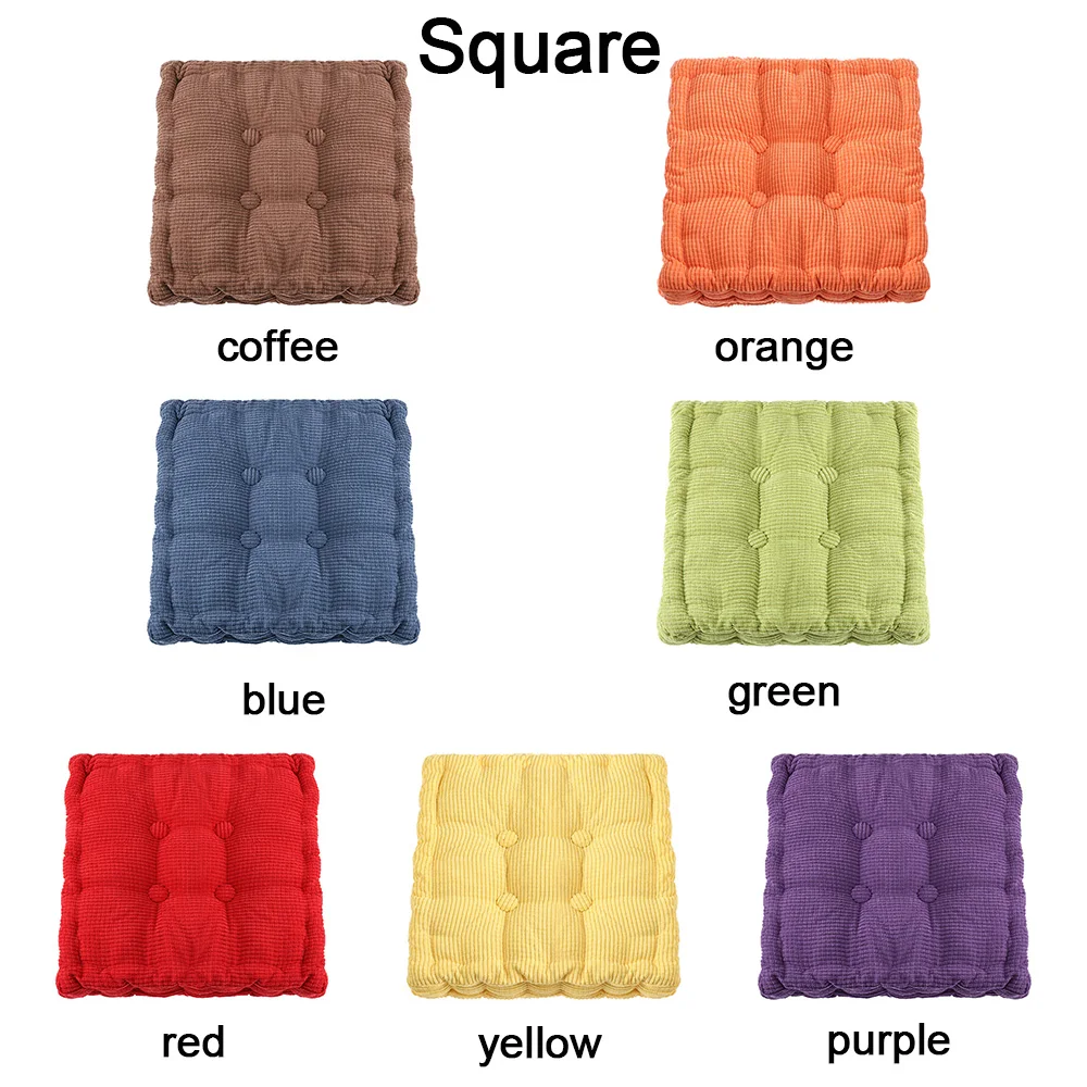 Тип: коврик для стула Материал: полиэстер/вельвет Ткань: кукурузная бархатная ткань Наполнитель: хлопок с жемчугом Форма: круглая/квадратная Цвет: красный/желтый/синий/зеленый/оранжевый/кофейный/фиолетовый Стиль: Круглый/квадратный