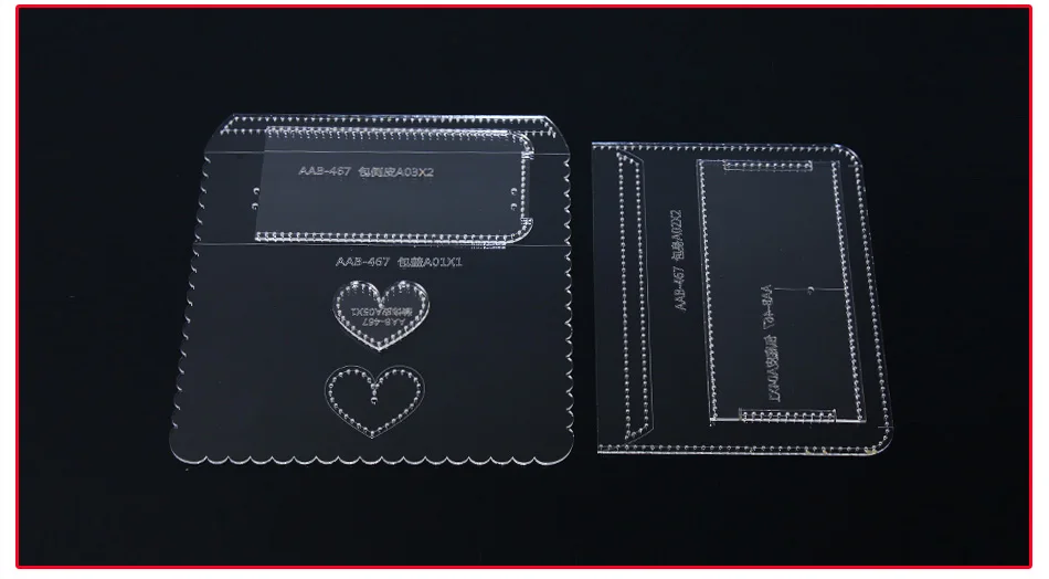 ---- 1. Мы используем акрил в качестве материала наших шаблонов. Прозрачные Акриловые шаблоны разработаны, чтобы дать кожаному мастеру преимущество в том, что он может точно найти и посмотреть на кожаную поверхность для оптимального размещения. Это также позволяет избежать дефектов, прежде чем резать, избегая отходов.