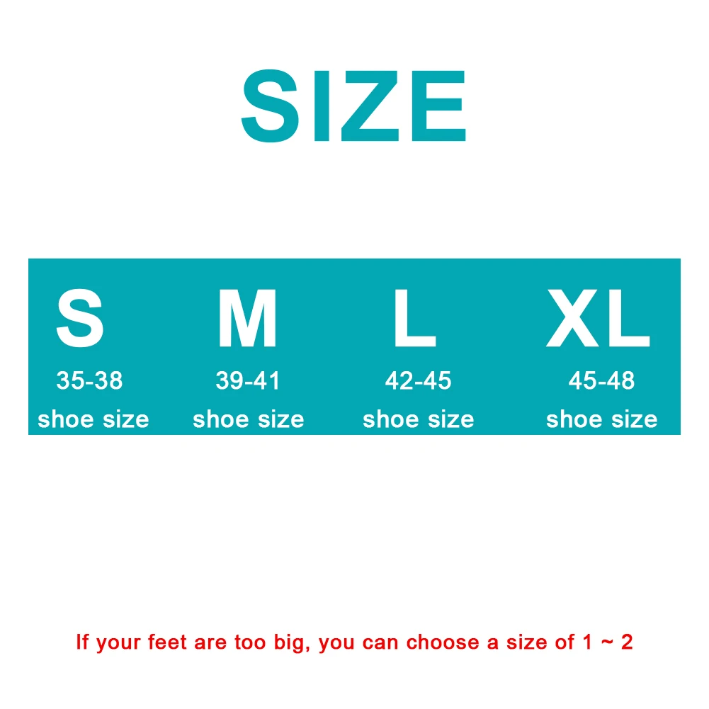 S: 35-38 shoe size; M: 39-41 shoe size; L: 42-45 shoe size; XL: 45-48 shoe size