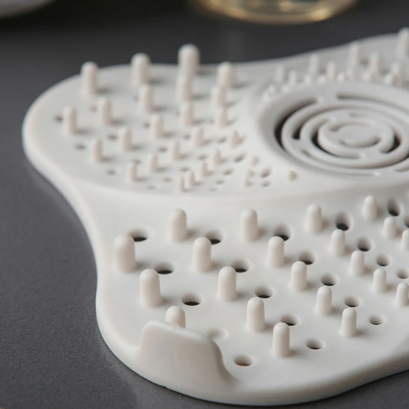 Высококачественный материал-дренажный Ловец волос изготовлен из гибкого силикона TPR, мягкого, нетоксичного, экологически чистого и прочного, легко моется.