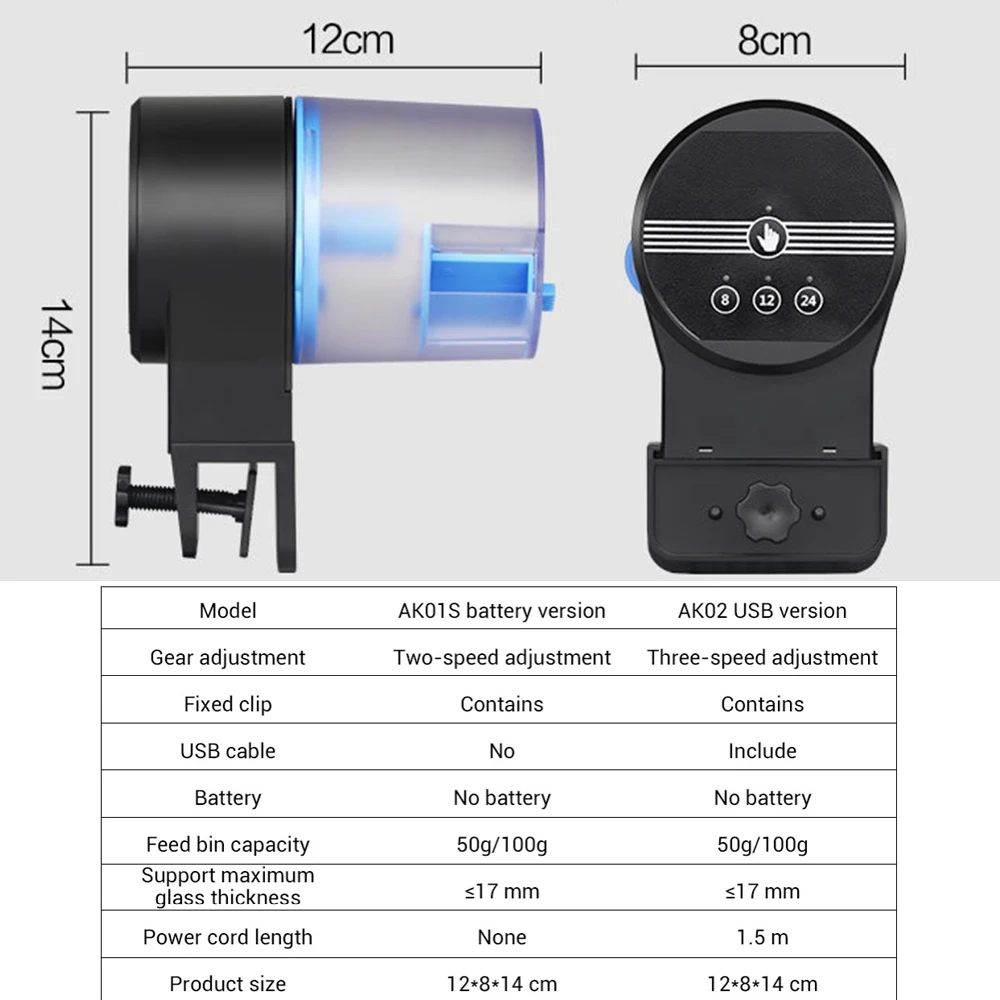 2. Large capacity: 50g/100g large-capacity feed bucket, suitable for all kinds of fish feed, such as granules, flakes and powder.